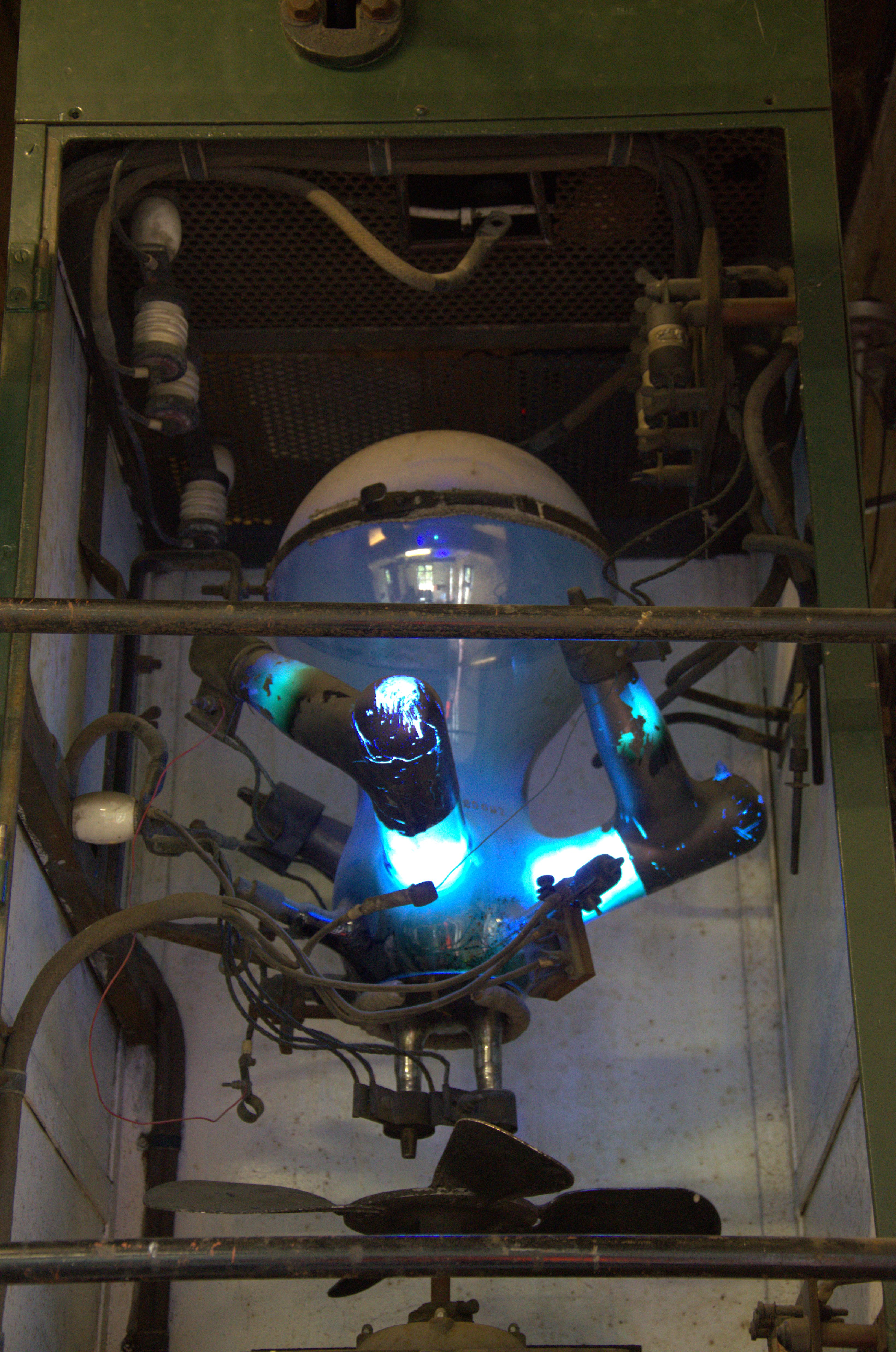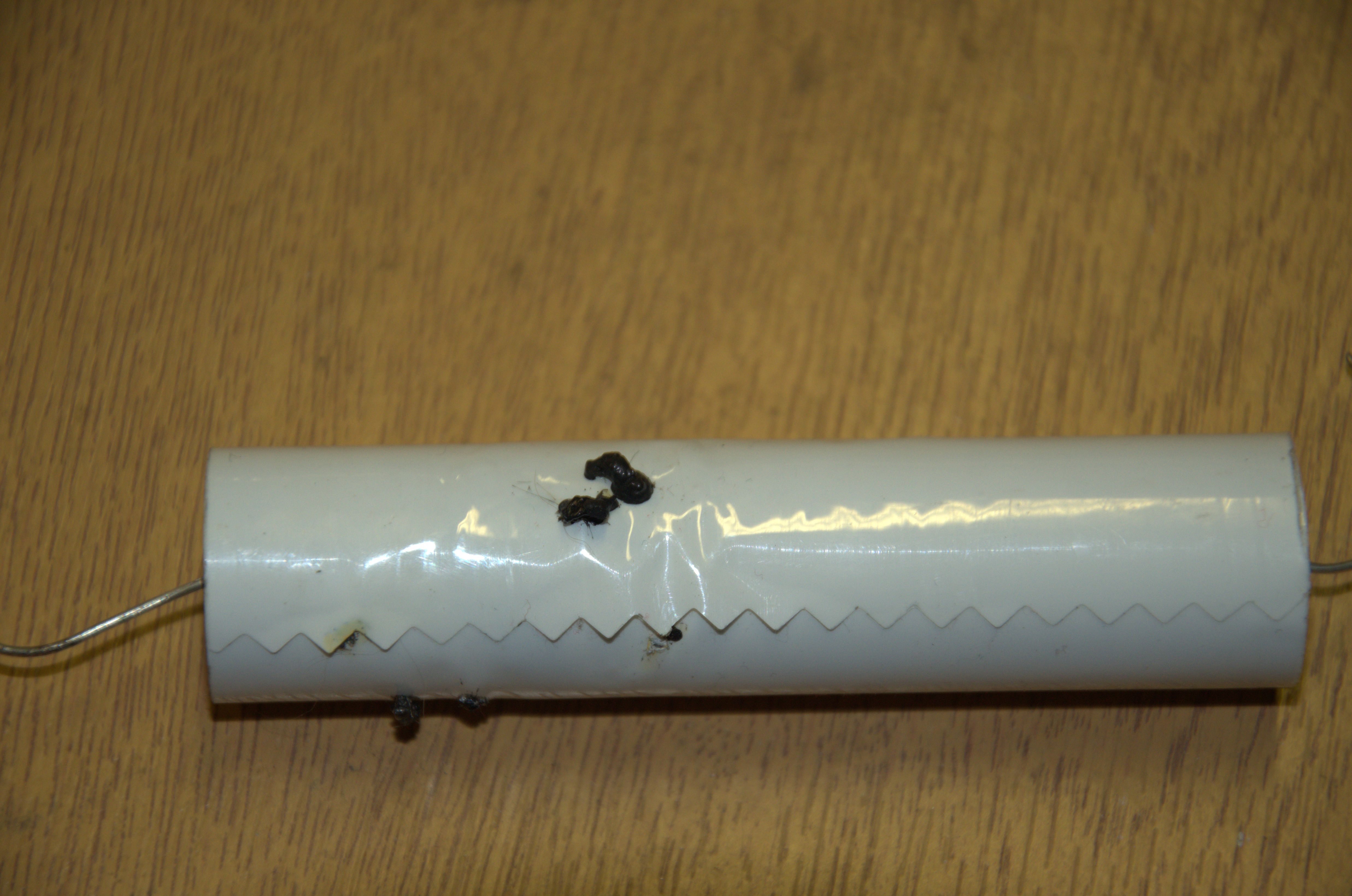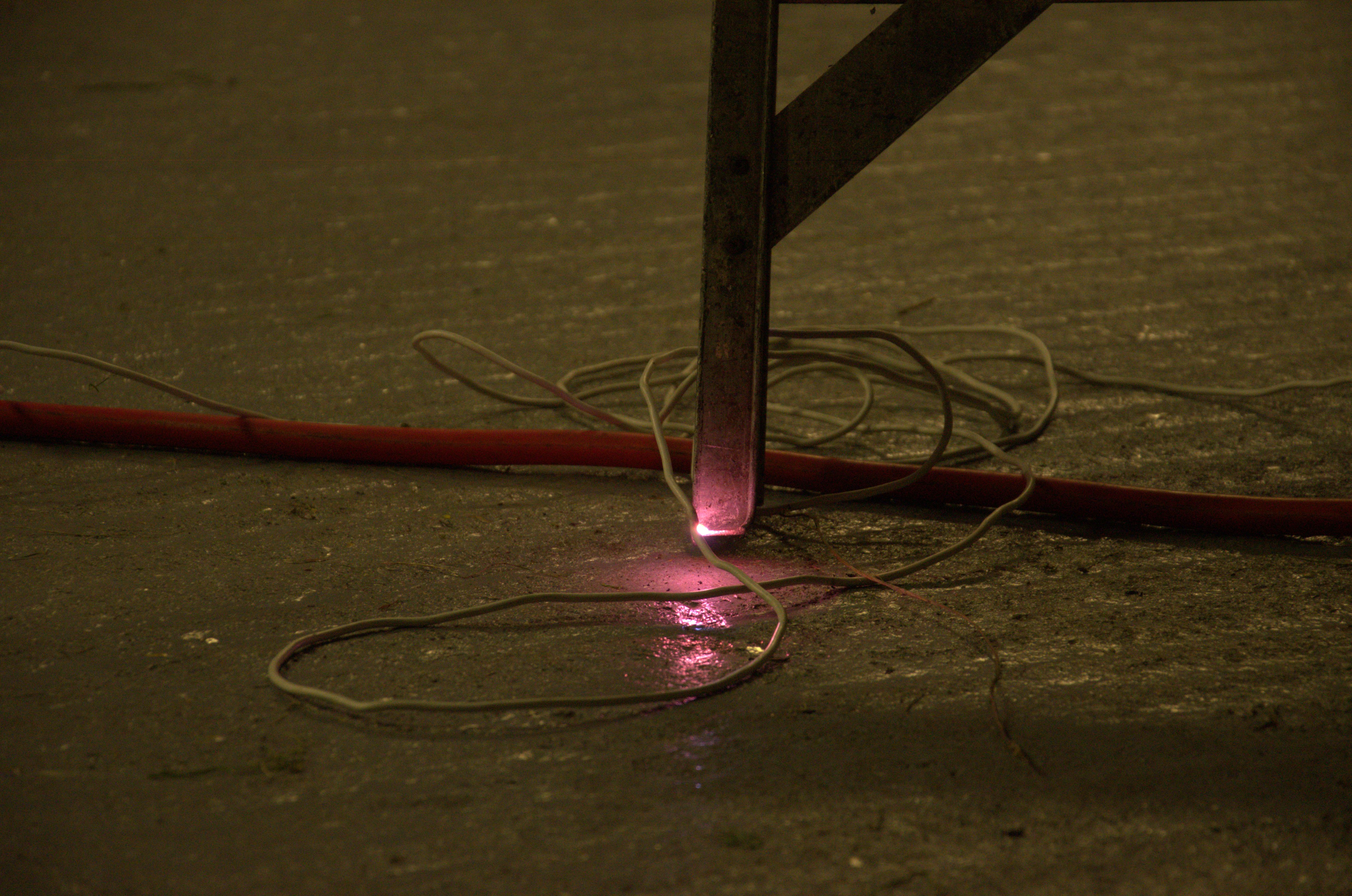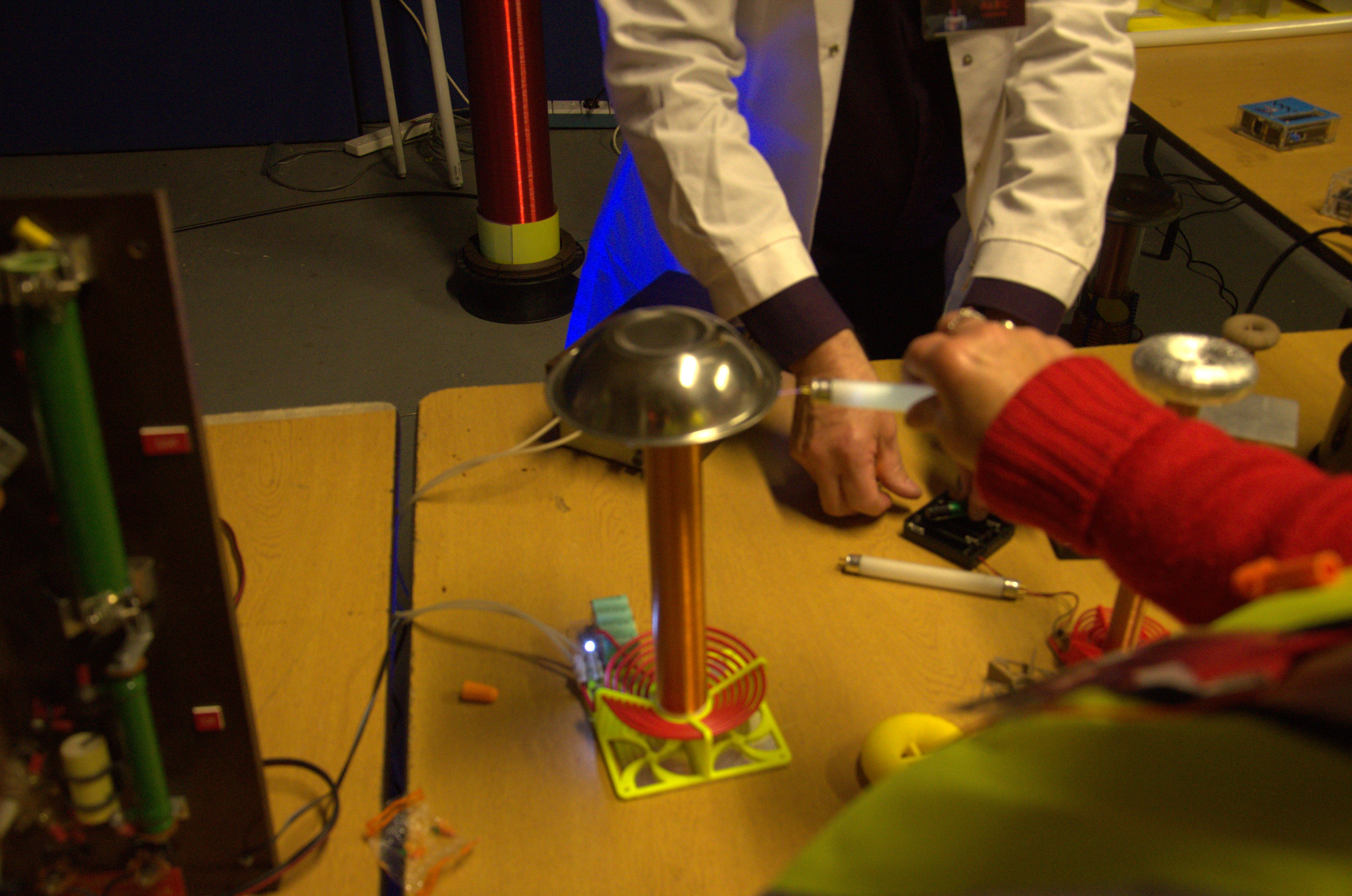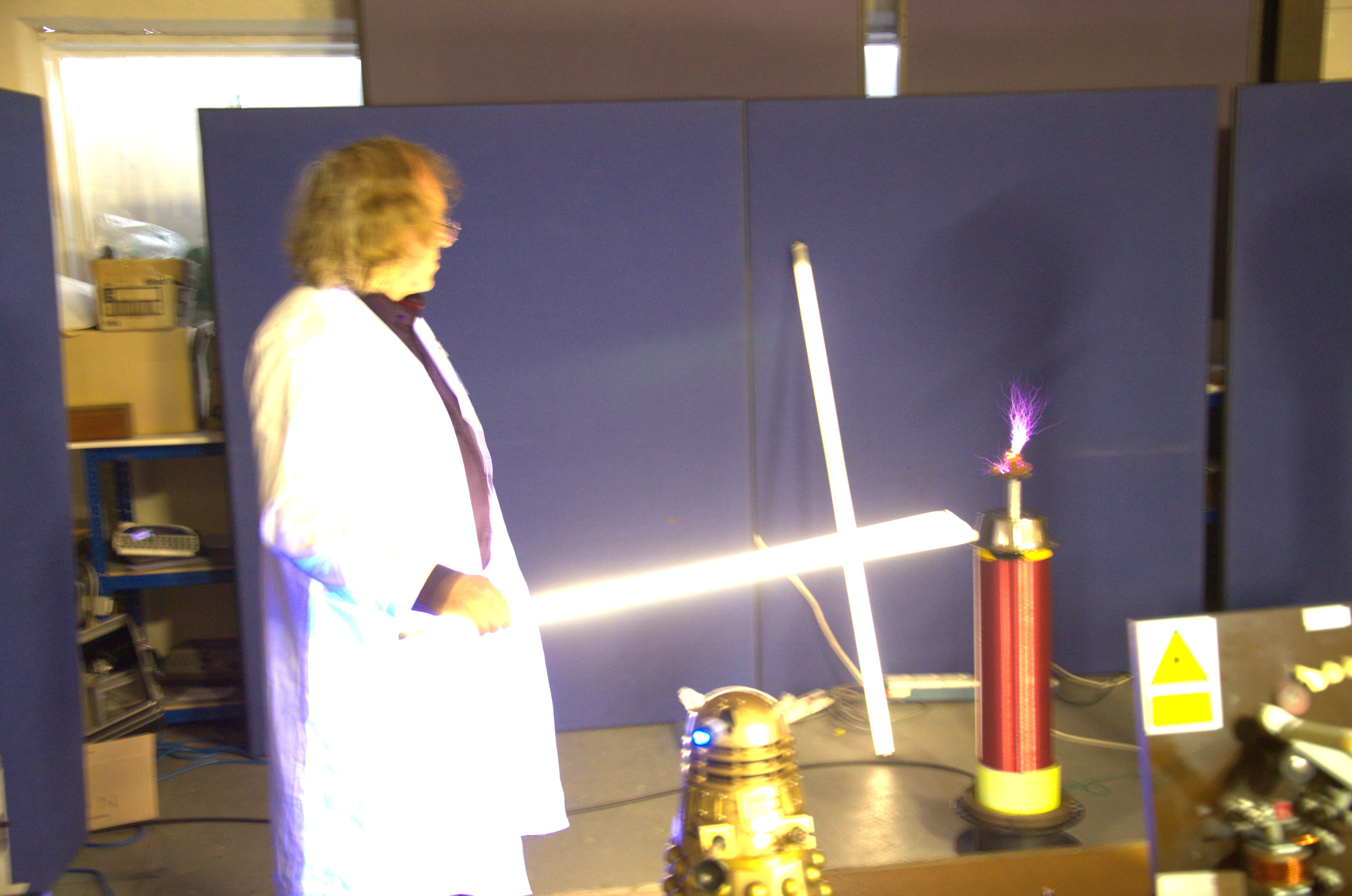 Alex holds the ‘brown end’ of a flourecent lamp